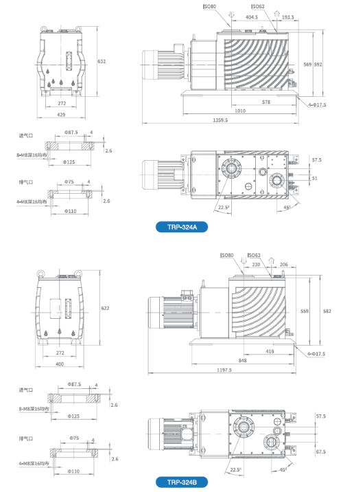3. 进气口和出气口采用国际标准ISO法兰;